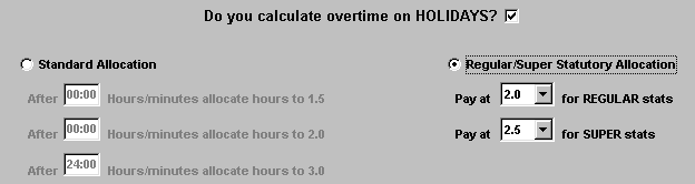 Simply click the desired check box and enter the values in the same way as was done in the Daily and Weekly Overtime tab.